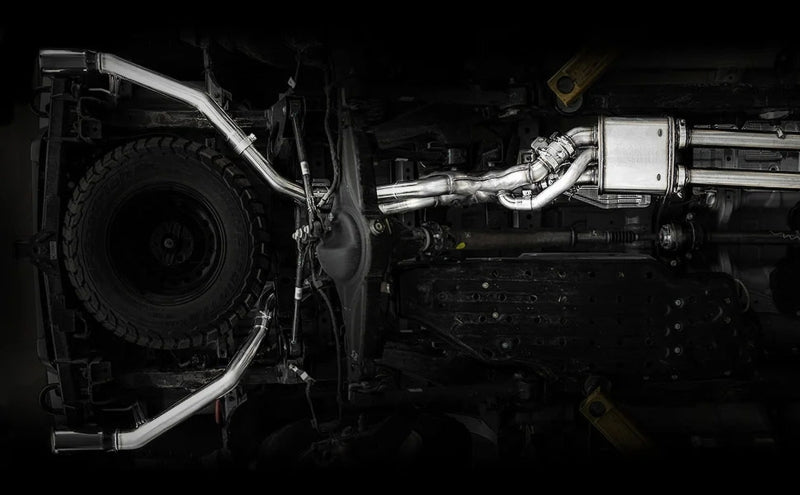 The MagnaFlow 2024 Ford Ranger Raptor Competition Series Cat-Back Performance Exhaust System 19637 brings an aggressive, attention-grabbing edge to the deep resonant exhaust note we're so well known for. This cat-back exhaust kit is designed to enhance your 3.0L V6 2024 Ford Ranger Raptor with dyno-proven performance made possible thanks to fast-flowing mandrel bent 3in. diameter piping that passes a straight-through muffler ending in a dual rear exit with 4in. welded-on double wall angle cut folded edge tips featuring a sporty black chrome finish. Exhaust system 19637’s cat-back layout replaces your truck's exhaust system from the catalytic converter on back with a weight-optimized, corrosion resistant, and durable stainless-steel design. This race-ready exhaust system is engineered to make your Ford Ranger Raptor's V6 engine produce moderate interior and aggressive exterior sound levels. Extensive 3D scanning was used during the development of this Ford Ranger Raptor exhaust system to create a direct-fit design, enabling a do-it-yourself installation process. Exhaust system 19637 is produced using advanced CNC precision robotic manufacturing techniques and backed by MagnaFlow's limited lifetime warranty. Please check to ensure compliance with local noise regulations.