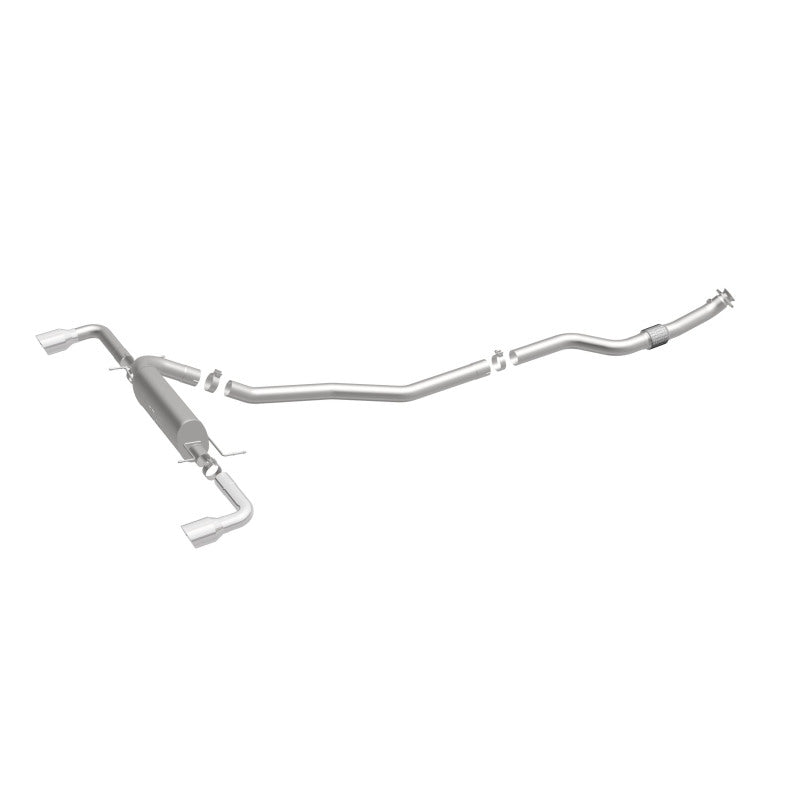 The MagnaFlow 2007-2009 Pontiac Solstice Street Series Cat-Back Performance Exhaust System 16645 brings out the personality of your 2.0L 2007-2009 Pontiac Solstice with our signature resonant, powerful engine tone and dyno-proven performance. Thanks to its fast-flowing, mandrel bent 3in. main piping and 1 Straight-Through mufflers ending in a Dual Split Rear exit with 4in. Polished Welded-On Double Wall Angle Cut Folded Edge tips, this Pontiac Solstice exhaust kit has the performance chops to match its sporty sound and appearance. Upgrade your ride to the next level with an exhaust that has the pipes to put other Pontiac Solstice's to shame. With this system your vehicle will be producing Moderate exterior and Mild interior sound levels while leaving other cars and trucks feeling envious at every stoplight. Exhaust kit 16645 features a cat-back layout that replaces your ride's stock exhaust components from near the catalytic converter on back. Extensive 3D scanning during development has resulted in a direct-fit design that you can easily install yourself. 16645 is produced using CNC precision robotic manufacturing techniques and is backed by MagnaFlow's 1-year limited finish warranty and limited lifetime construction warranty.