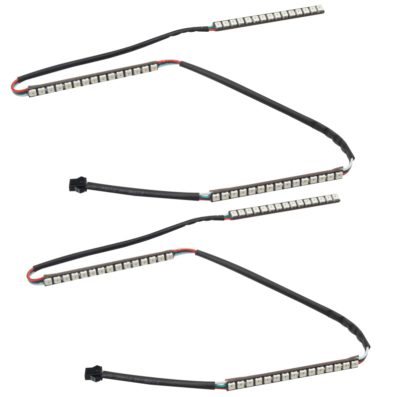 Outfit your ride with this dynamic 2015-2017 Ford Mustang DRL + halo kit! The ORACLE Lighting Dynamic ColorSHIFT(tm) technology is the latest advancement in our expansive lighting modifications. This feature allows the user to run multiple moving color patterns through the product, creating a vivid eye-catching lighting effect. This kit includes a Dynamic Switchback Turn Signal featuring a sequential movement effect through the rings and DRL board. Also included is a Dynamic ColorSHIFT(tm) Demon Eye Kit, which is used to backlight your headlight's projectors. Conveniently controlled through a free smartphone app, the system features over 200 pre-programmed moving patterns as well as static color control and white mode for normal street driving. In addition to the pre-programmed features, the user can also create custom designs through pixel editing in the app.