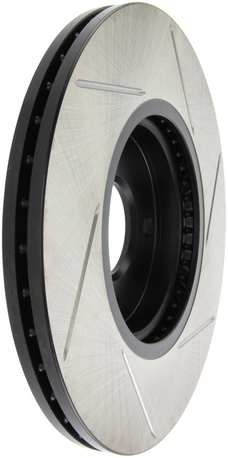 StopTech Slotted Sport Rotors are 1-piece direct replacement brake discs for factory brake systems and stock calipers that look great behind your wheels – and offer significantly improved braking performance. The unique slotting aids with heat and brake dust dispersal; prevents glazing of the pads; adds bite and improves wet and dry braking performance. Built to last; the black e-coating provides protection from corrosion and the high carbon metallurgy (in most applications) offers quieter operation; better crack resistance and increased performance.