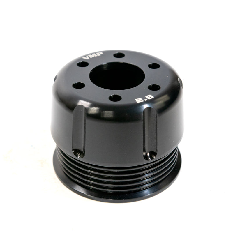 2.8 mm pulley for TVS Supercharger kit on 2011+ 5.0L Mustang. Lightweight black anodized aluminum. Ti-VCT settings will change boost, quoted boost numbers based on VMP Tune.